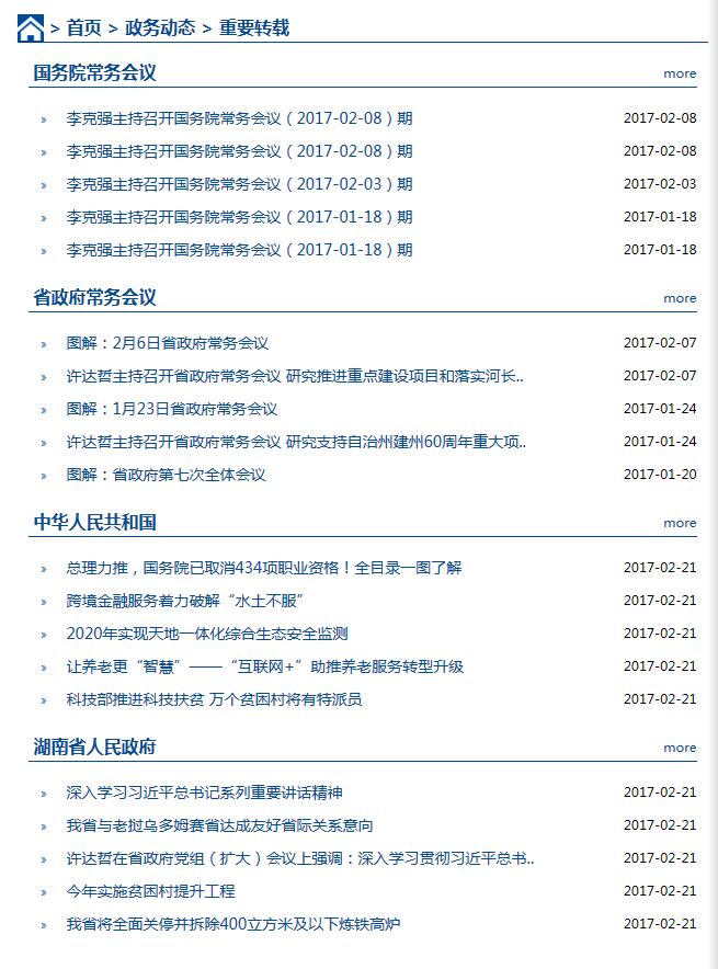 此功能為政府類黨政機關單位官方網(wǎng)站必備功能,定時對上級(國務院、省政府等)指定欄目的文章進行轉載,