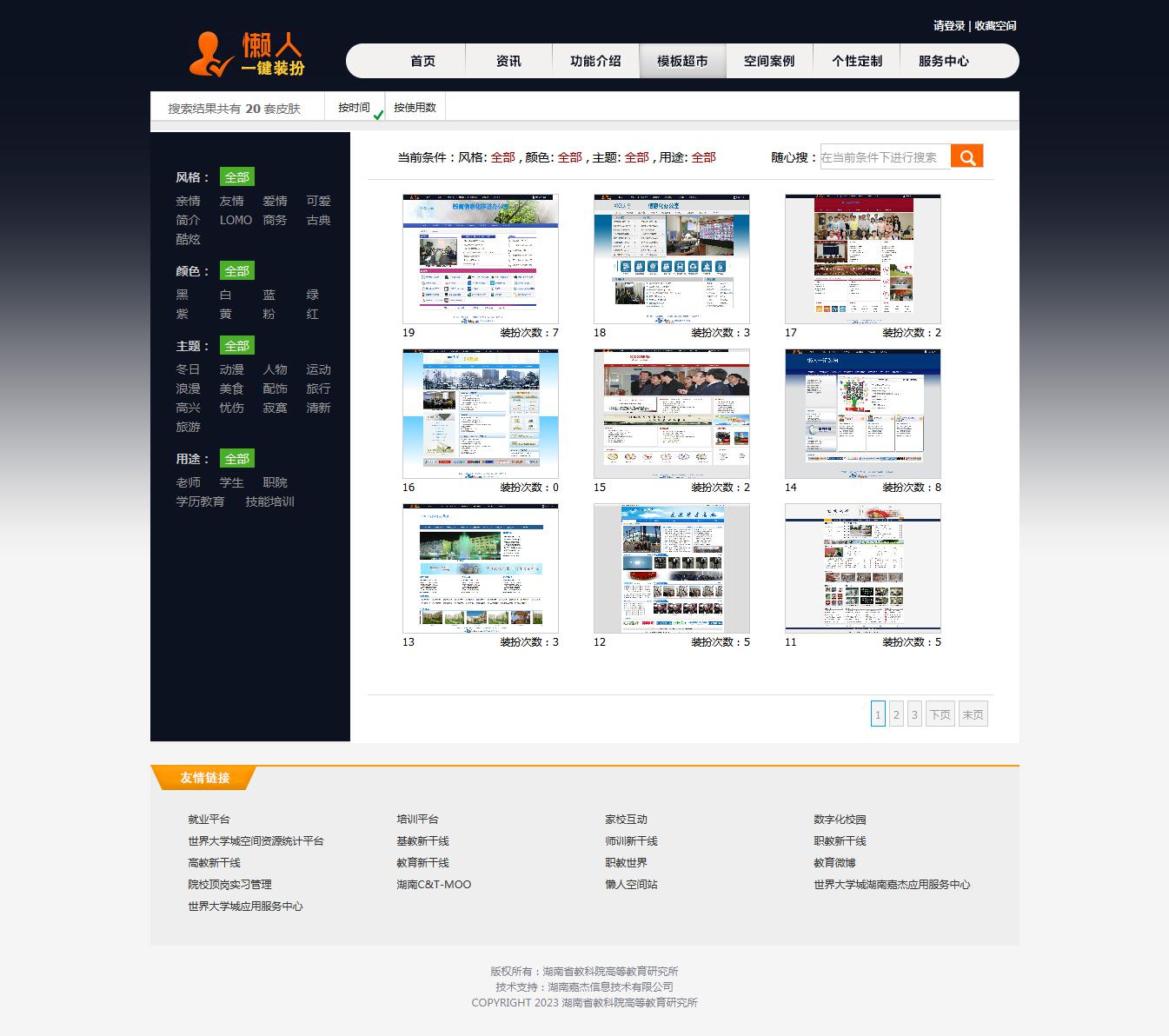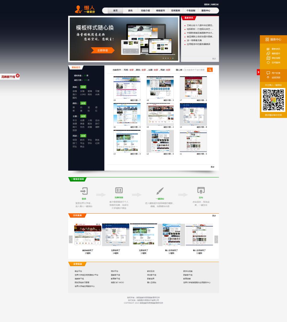 懶人一鍵裝扮系統(tǒng)是為世界大學(xué)城空間量身打造的一款一鍵式建設(shè)及美化工具。該工具為不僅為空間不同角色用戶,如:學(xué)生、老師、領(lǐng)導(dǎo)、職能處室提供了多樣性空間模板選擇,而且可以直接同步空間應(yīng)用功能,使欄目建設(shè)、文章發(fā)布、導(dǎo)航建設(shè)等功能都可以在該工具上一站完成。該工具為用戶提供了一個(gè)無需了解HTML、CSS、PS等代碼,無需學(xué)習(xí)計(jì)算機(jī)使用軟件,就可以快速打造一個(gè)美觀實(shí)用的的空間,解決了用戶自主建站耗時(shí)長、專業(yè)要求高、操作復(fù)雜等問題。