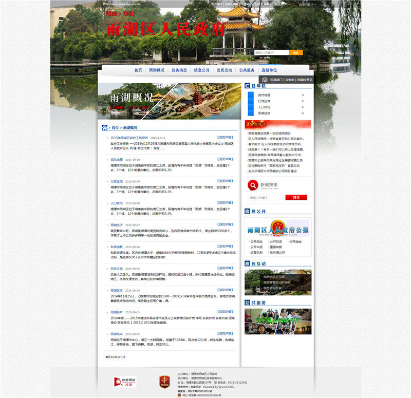 湘潭市雨湖區(qū)政府官方網站文章列表頁效果圖
