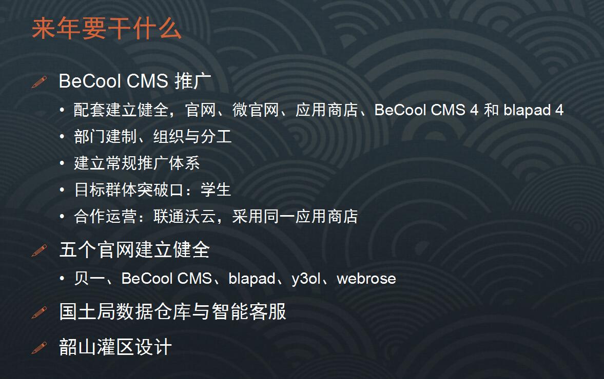 展望2017年:2017年是公司的第十周年,也是我們轉(zhuǎn)型元年,這一年的工作提要如下圖: