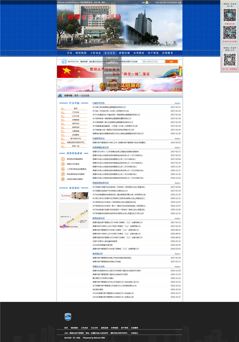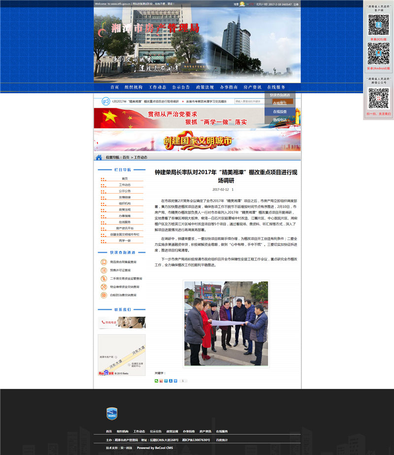 貝一科技是湘潭市房產(chǎn)管理局服務(wù)多年的技術(shù)服務(wù)商。次此改版主要針對美工升級(jí)、欄目整編和功能升級(jí)。