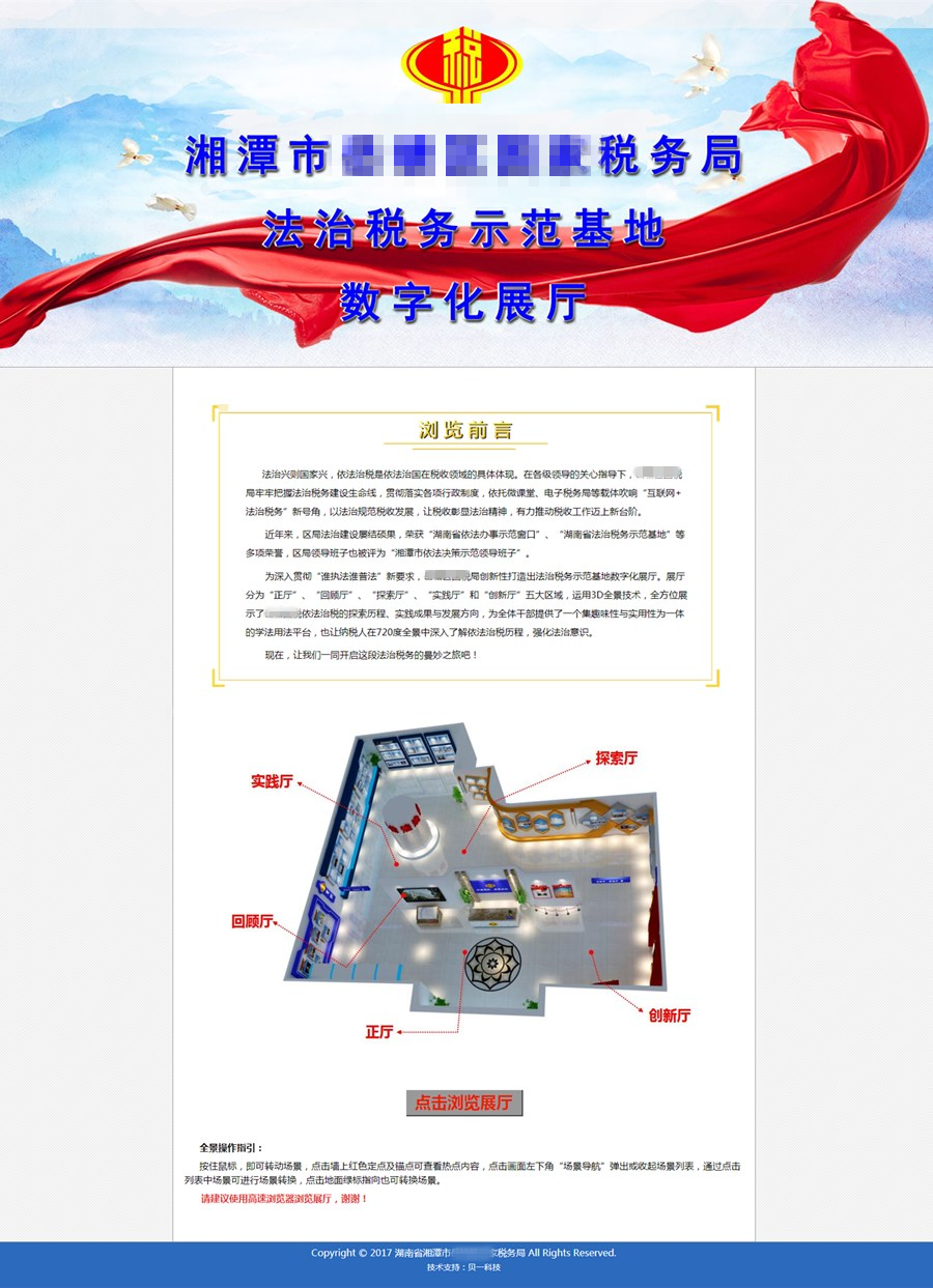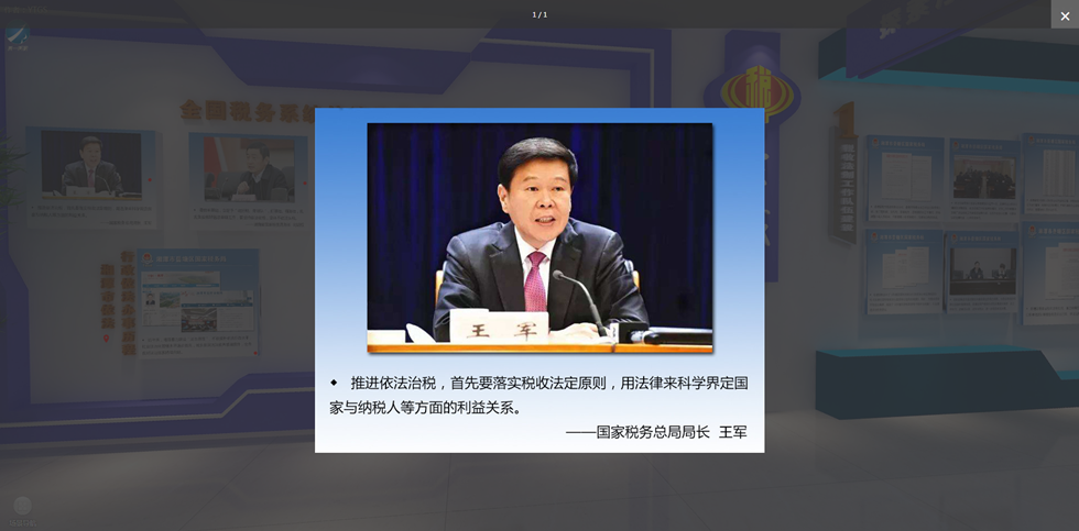 為深入貫徹“誰(shuí)執(zhí)法誰(shuí)普法”新要求,XXX國(guó)稅局創(chuàng)新性打造出法治稅務(wù)示范基地?cái)?shù)字化展廳。展廳分為“正廳”、“回顧廳”、“探索廳”、“實(shí)踐廳”和“創(chuàng)新廳”五大區(qū)域,運(yùn)用3D全景技術(shù),全方位展示了XXX國(guó)稅依法治稅的探索歷程、實(shí)踐成果與發(fā)展方向,為全體干部提供了一個(gè)集趣味性與實(shí)用性為一體的學(xué)法用法平臺(tái),也讓納稅人在720度全景中深入了解依法治稅歷程,強(qiáng)化法治意識(shí)。
