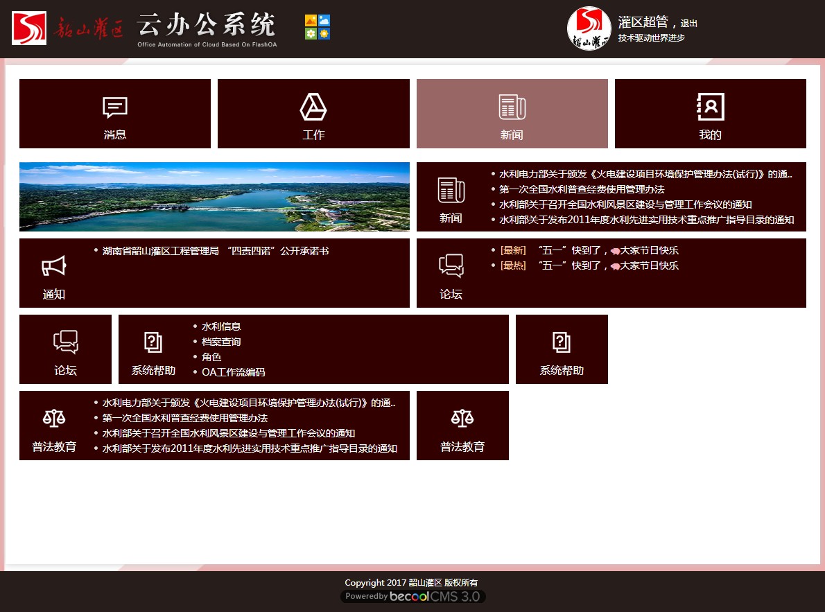 7月17日,經(jīng)過半年的整體試運行,由貝一科技全程設計、開發(fā)的韶山灌區(qū)云辦公系統(tǒng),完成整體驗收,正式上線。