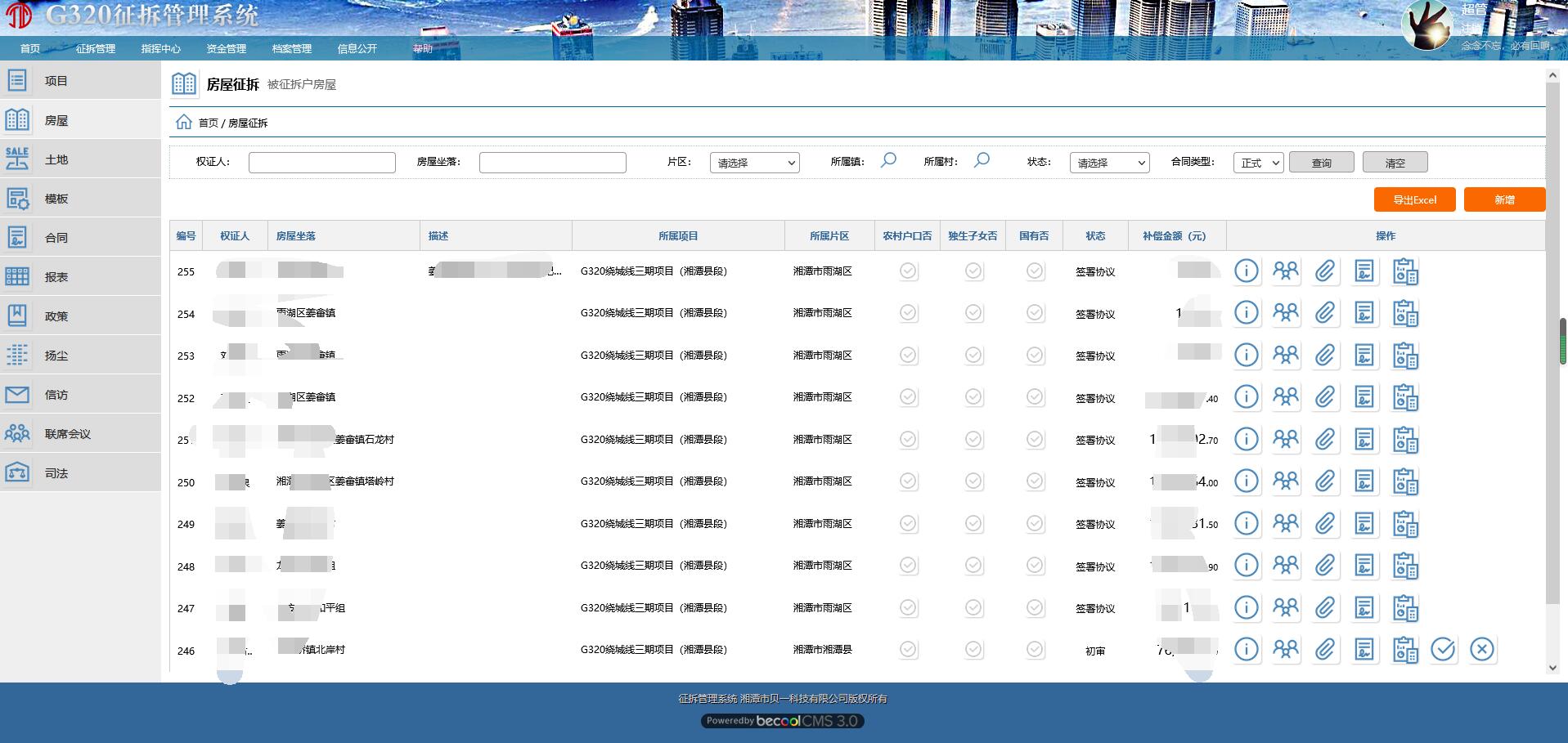 G320 征拆管理系統(tǒng)建設項目由湘潭中冶建信項目管理有限公司、湘潭市優(yōu)居中心(含下屬各區(qū)縣優(yōu)居中心)、湘潭市交通局、湘潭市貝一科技多方聯(lián)合設計開發(fā)的平臺級項目。遵照在實際征拆工作中,優(yōu)居中心、建設方、投資方、監(jiān)管方的工作需要,進行的100%事實業(yè)務全程數(shù)據(jù)電子化定制開發(fā)。項目可復用于其它市州優(yōu)居中心,包含政策錄入、資金監(jiān)管、進度追蹤、線下數(shù)據(jù)采集、征拆工作一張圖、地理圖像、合同協(xié)議生成、被征拆對象簽約、檔案歸檔及追蹤等等功能模塊,包含移動端和PC端,已應用于實際工作中,且已產(chǎn)生實際效益。